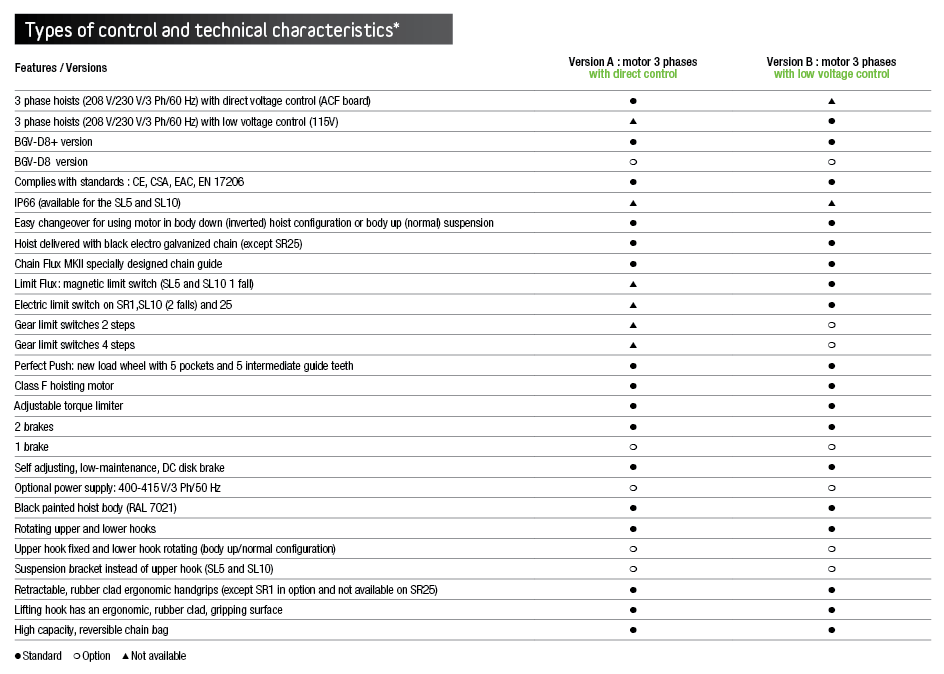 • IP66 and NEMA 4X protection as standard for the entire hoist.