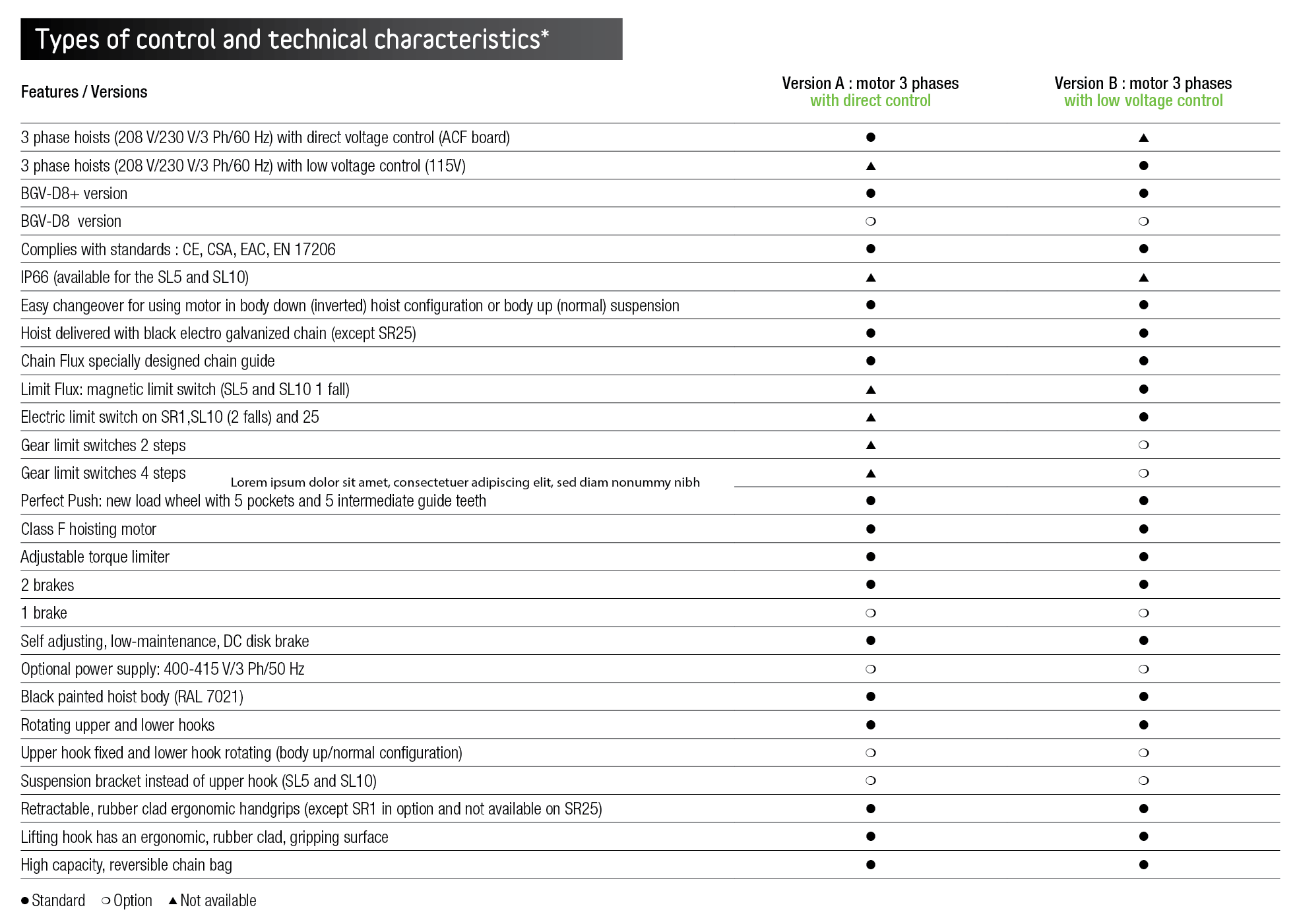 - IP66 and NEMA 4X protection as standard for the entire hoist.